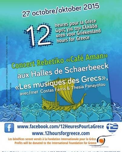 For the very first time, Brussels will host on 27 October at 20.00 the famous “Café Aman”, the concert by Kostas Ferris, based on the music of his film “Rebetiko”, which obtained the Silver Bear at the Belin Film Festival in 1983. The performance, which has encountered considerable success in Greece for years, will feature 12 musicians and artists on stage, among whom Kostas Ferris himself and music director Thesia Panayotou. This exceptional charity concert, which is dedicated to the “Music of the Greeks”, is organized by the non-profit association “12 Hours for Greece“. All profits will go to the International Foundation for Greece (IFG), in the framework of “Fuel for Schools”, a project aimed at purchasing fuel for heating schools in Northern Greece during the winter of 2015-2016. Tickets, at the price of 25 €, can be purchased shortly at the:
