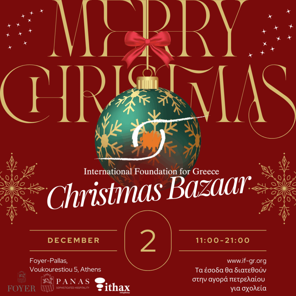 The International Foundation for Greece (IFG) is organizing a Christmas Charity Bazaar on Saturday, December 2, 2023 in the foyer of the Pallas Theater, 5 Voukourestiou Street.