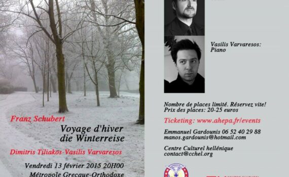 AHEPA France and Centre Culturel Hellénique are organizing a charity concert in Paris on Friday 13th February at 20:00 at the Greek Orthodoxe Metropole (Agios Stefanos) with Dimitris Tiliakos (baritone) and Vassilis Varvaresos (piano). Profits will be donated to the International Foundation for Greece for “Fuel for schools”. Advance bookings: http://ahepa.fr/events/